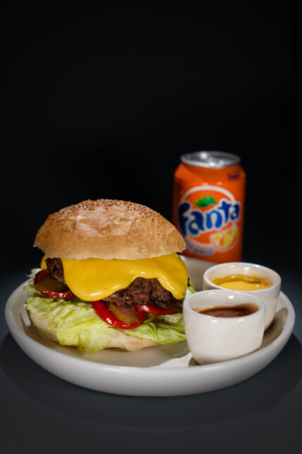 کلاسیک برگر + فیله مرغ سوخاری + سس پنیر + چدار